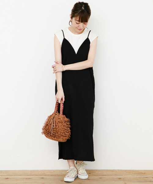 フェミニンなキャミワンピースとTセットになった、お得感のあるワンピースですね。