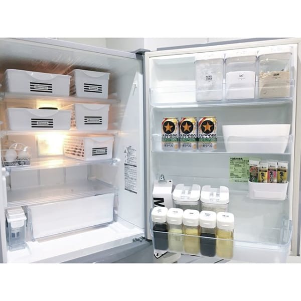 冷蔵庫の中身も種類別にボックスやボトルを統一すれば、残量が分かりやすくなったり、定位置が決まって使いやすくなったりしますね。