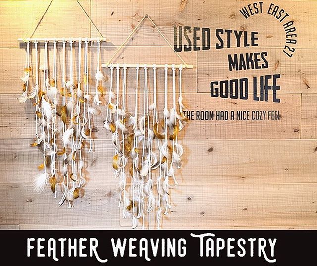 マクラメ編みやウィービングは慣れるまで少し時間がかかりますが、丸棒にロープを結びつけて鳥の羽をつけるこちらのウィービングなら、手作りに慣れていない方にも簡単に作れます。