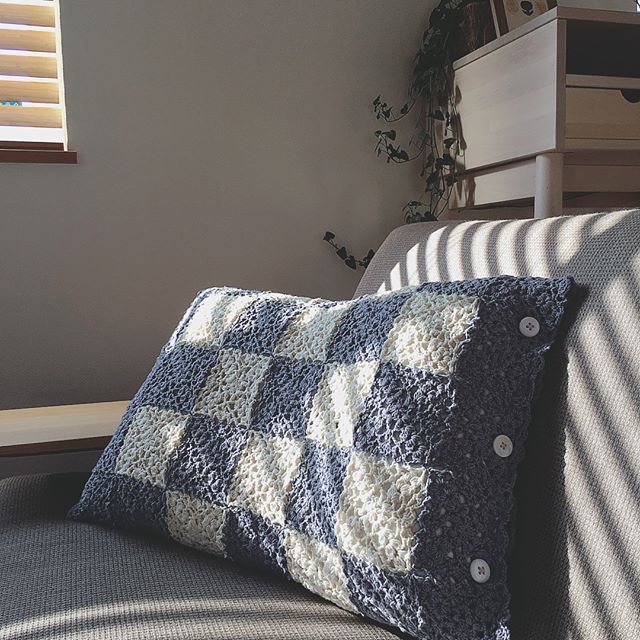 毛糸のクッションカバーは、これからの季節にピッタリなアイテム。格子模様でお部屋にアクセントも与えてくれます。