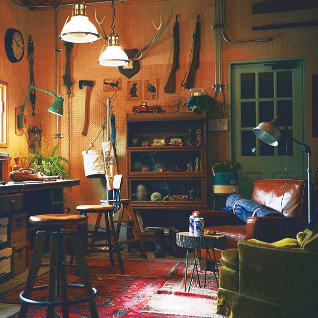 こちらは、レトロな雰囲気のお部屋にインダストリアルなアイテムを取り入れています。
