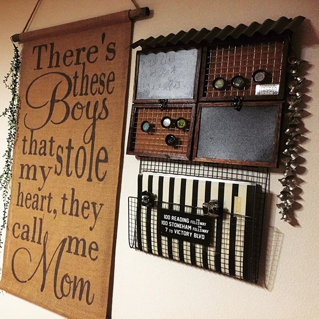ワイヤーネットを曲げて作ったプリント入れ。黒のワイヤーネットは、アイアンのような雰囲気でチープに見えないのが良いですよね。