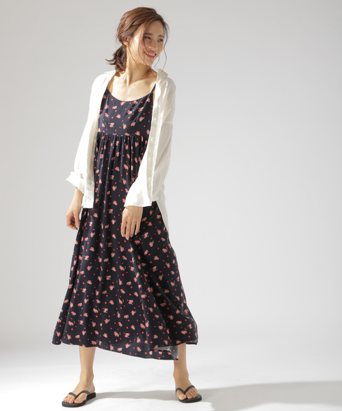 クラシカルな雰囲気の花柄キャミソールワンピース。