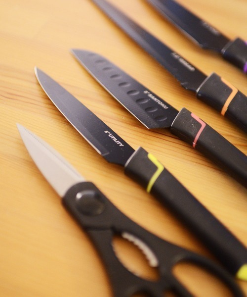 [entre square] VIDA/ノンスティック コーティング ブラックナイフ 4個セット&シザーセット