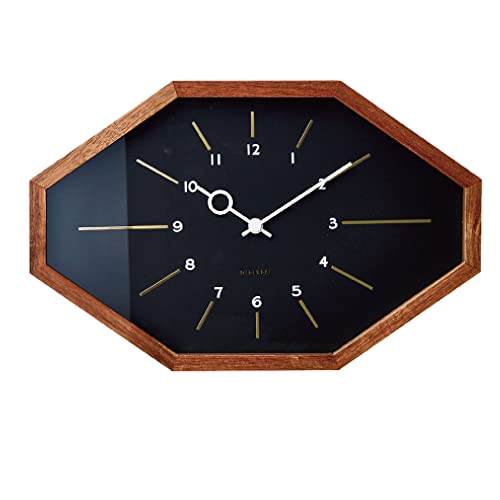 シンプルなアンティーク風の壁掛け時計を選ぶなら、こちらはいかがでしょう?八角形のどこか懐かしいフレームは、ウォールナット製で重厚感がありますね。