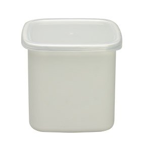 こちらは、シール蓋付きの野田琺瑯「スクウェアM」。サイズは縦124×幅124×高さ84mm、容量は0.8Lです。