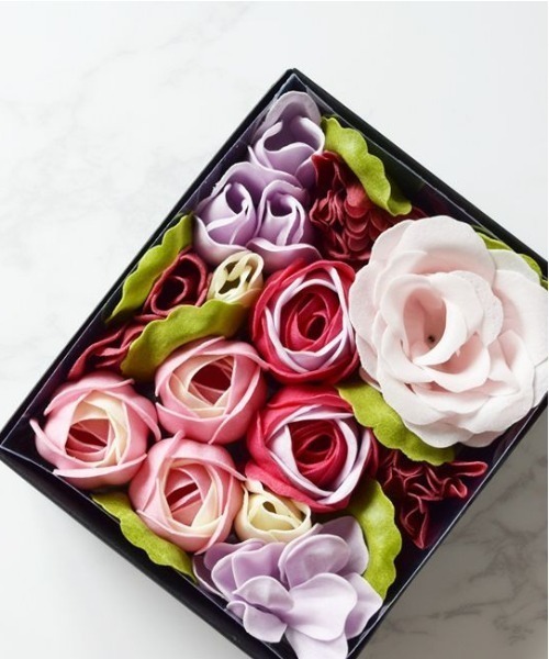 本物のお花をボックスに詰め込んだように見えるおしゃれな入浴剤は、女性へのプレゼントにおすすめです。