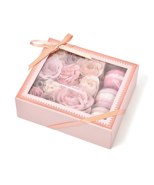 ピンクをベースにした可愛らしいお花のバスペタルと、美味しそうなマカロン型のバスフィズがセットになった入浴剤ギフトです。