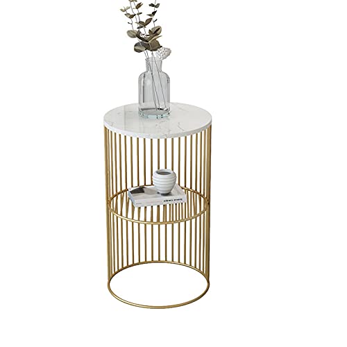 大理石柄×ゴールドの丸いサイドテーブルは高級感があり、向こうが透けて見えるデザインは一人暮らしの住まいのアクセントとなります。
