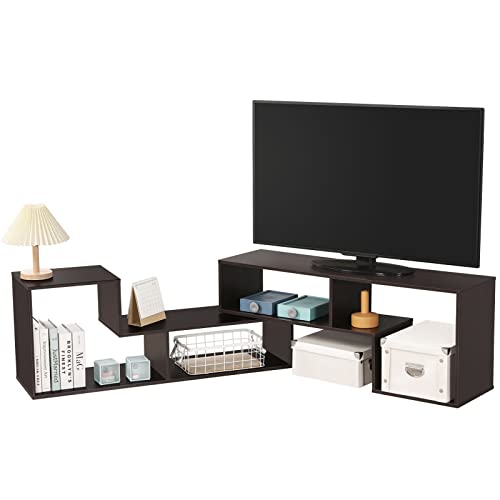 小スペースから広いスペースまで対応する便利な伸縮タイプのコーナーテレビ台。こちらは魅せる収納を楽しみたい方におすすめの『YeTom』のテレビラックです。