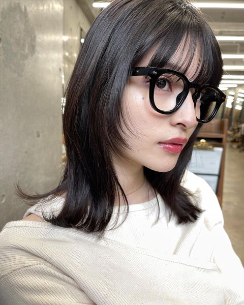 ミディアムのおしゃれな髪型と、知的に見える黒ぶちメガネの組み合わせもおしゃれです。
