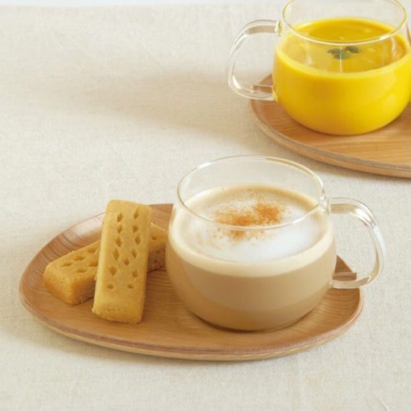優しい木のプレートに飲み物とお菓子を乗せたら、省スペースでカフェ時間を楽しむことができます。これなら仕事や勉強中のデスクに置いて、ちょっとずつ頂くこともできそうです。