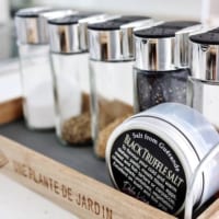 キッチン小物も多種多様に取り揃っていますよ!こちらは、中身が見えるガラス製の調味料入れです。振りかけ口が大小2種類あり、使い分けが簡単で便利♪使うときは片手でポンとフタを上げるだけで◎