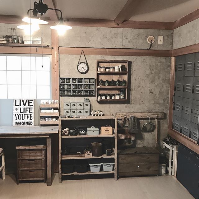 温泉やプールなどでよく使われるシューズロッカーを、自宅に置いてみるとお店のような本格的なインテリアに。