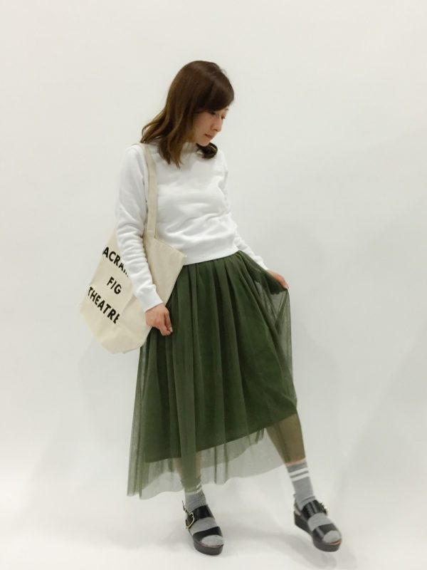 アークカラーのグリーンは、秋の印象を与えるカラーですが、そんなことはないんです!明るめカラーのグリーンは、春の新緑を思わせる春のカラー。春めいたグリーンカラーを使ったスカートのコーディネイトを紹介します。
